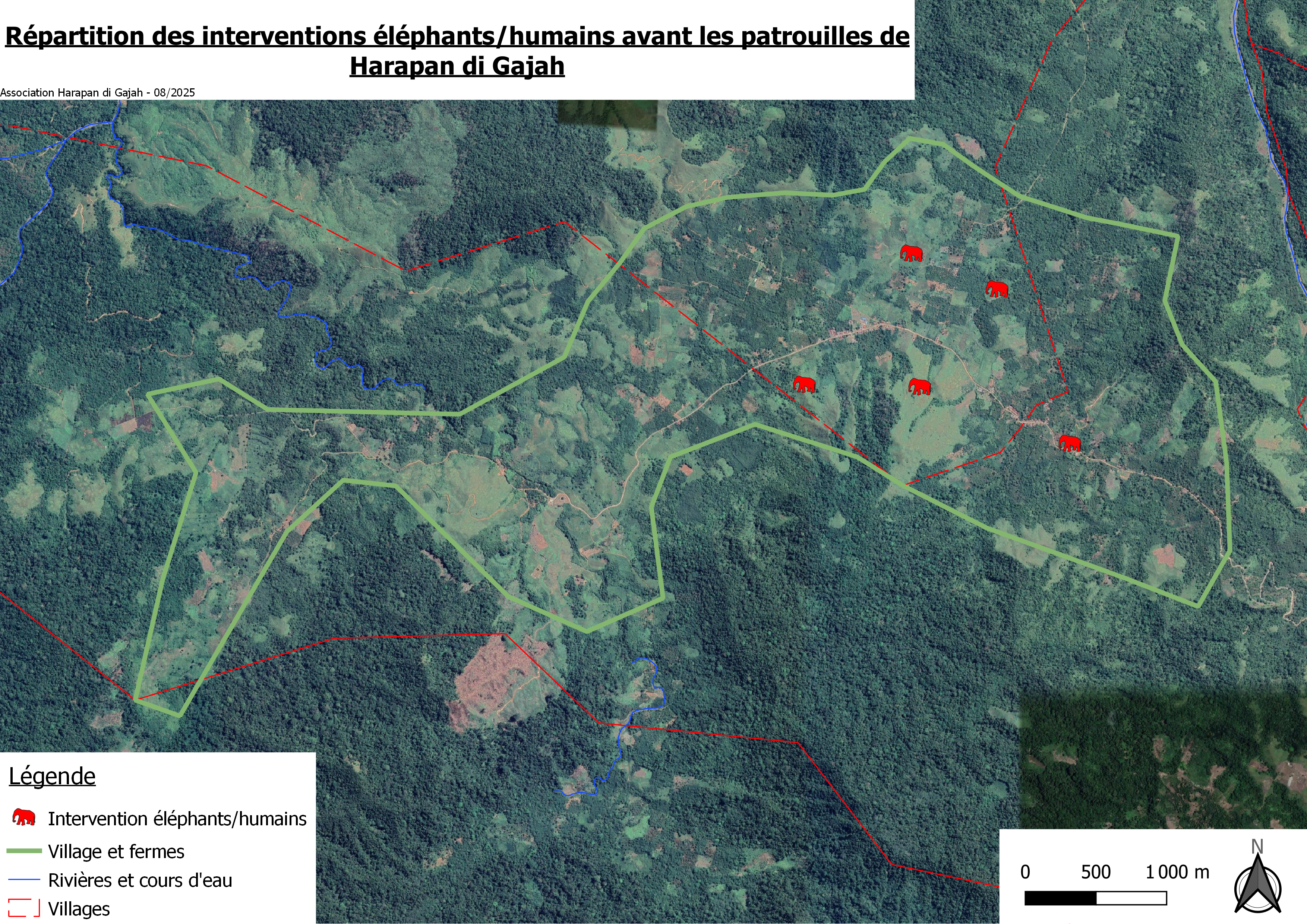 Afin de créer une stratégie concrète et efficace pour maintenir les éléphants à l’écart des zones habitées et cultivées, il est nécessaire de déterminer la localisation exacte des points par lesquels les éléphants sortent de leur habitat et entrent dans celui des humains. Ces points sont essentiels à patrouiller de façon à anticiper les mouvements des éléphants, et les bloquer avant même qu’ils n’entrent dans les villages. Cette cartographie est généralement rapide à réaliser grâce à la mise en commun des données connues par les habitants et par les habitants.